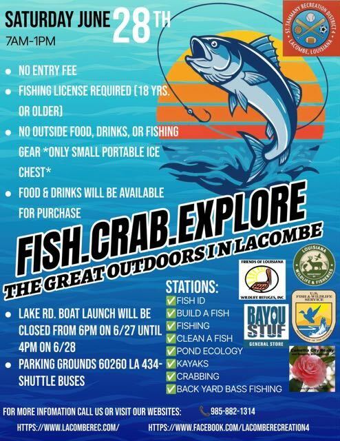 No Entry Fee Fishing License Required (18+) No Outside Food, Drinks, or Fishing Gear** *Small Portable Ice Chest Permitted Food & Drink Available for Purchase Parking Grounds: 60260 LA 434-Shuttle Buses